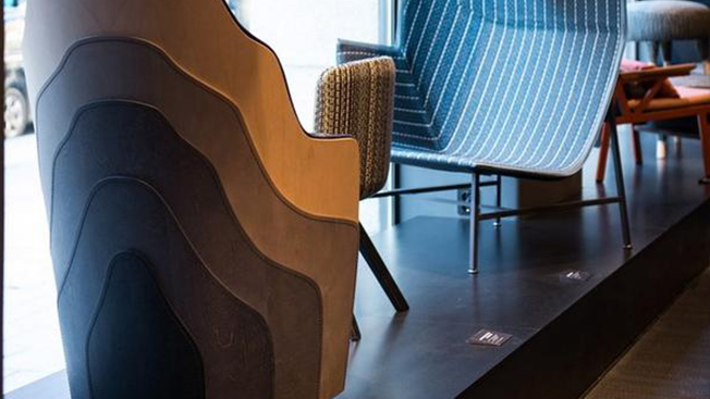 紋理和手工編織的效果,通過編織乙烯基材料結(jié)合了黑色、灰色、紅色和藍(lán)色等多種顏色,為空間創(chuàng)造出多種可能。